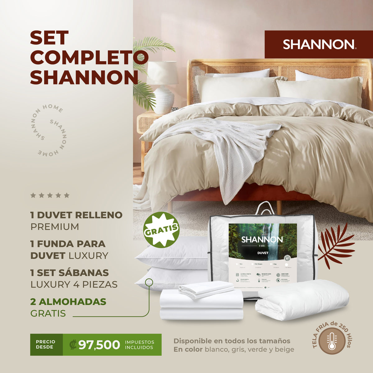 La línea hotelera Shannon home le ofrece una gran variedad de productos, protectores de colchones, edredones, sabanas de calidad hotelera, que ponemos a su disposición al mejor precio manteniendo la mejor la calidad.